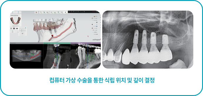 컴퓨터 가상 수술을 통해 최적의 임플란트 식립 위치 및 깊이를 미리 결정하고