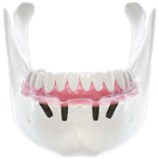 4개의 임플란트를 심고, 그 위에 보철물을 부착하는 방식.