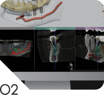 컴퓨터 가상 수술을 통해 최적의 임플란트 식립 위치 및 깊이를 미리 결정하고
