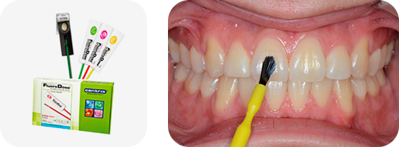 치아 전체에 점도가 높은 불소제를 직접 발라 주어